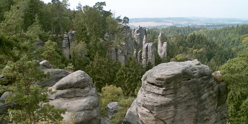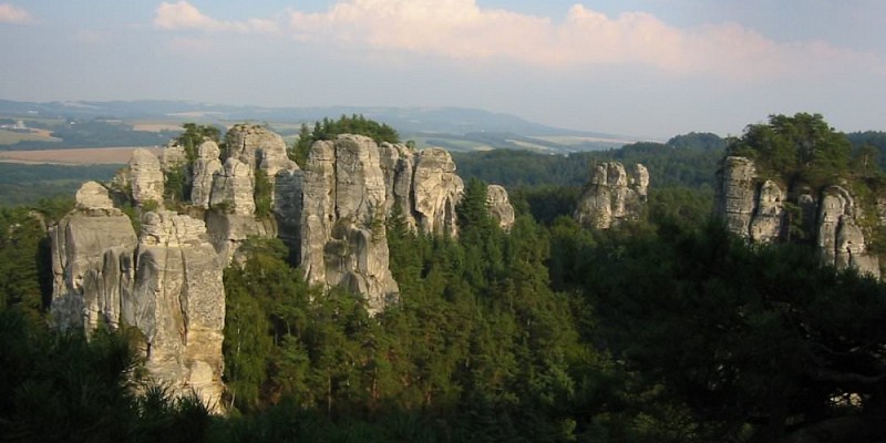 Hruboskalské skalní město je přírodní rezervací a skládá se z desítek skalních věží vysokých až 90 metrů. Jako na dlani jsou vidět z vyhlídek u cesty Valdštejn - Hrubá Skála. WWW
