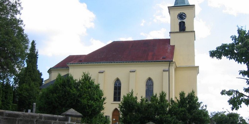 Z dálky viditelný farní chrám s vyhlídkovou terasou. Původem gotický kostel byl naposled přestavován v roce 1832. Díky daru mecenáře pak dostal novou fasádu v letech 2001-2. WWW